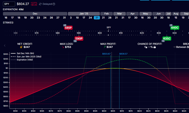 In the early stages of the iron condor, we like to either roll the tested spread away and/or roll the untested spread closer.