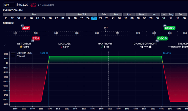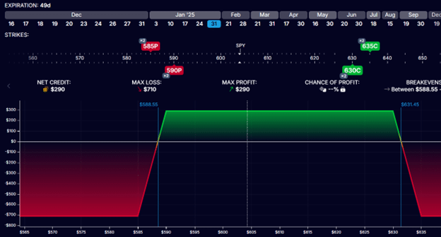 As a review, an iron condor is an out-of-the-money put spread plus an out-of-the-money call spread.