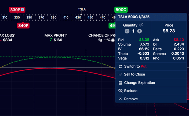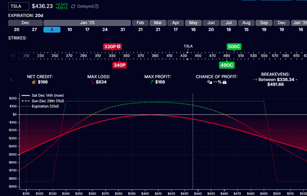 In this example, we use Tesla’s (TSLA) stock iron condor with 20 days left until expiration.