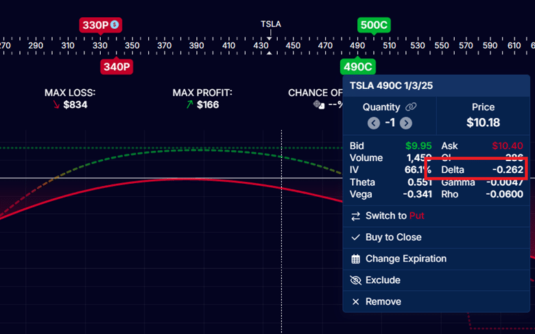 Overall, a negative delta means that the trade benefits if the price of TSLA goes down.