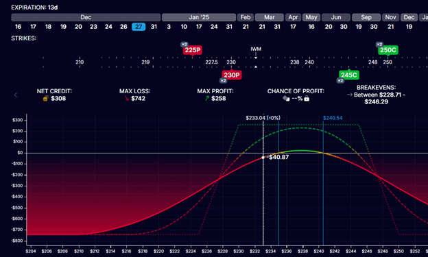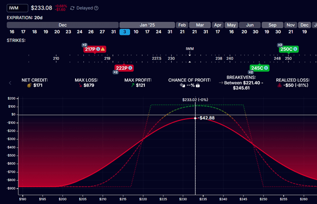 For our last example, suppose we have a two-contract iron condor in IWM.