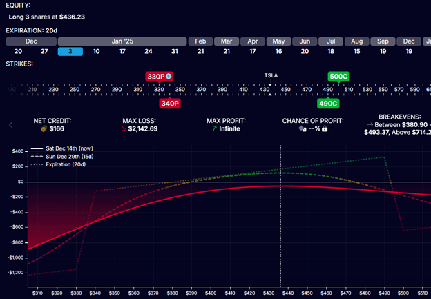 We also would sell the shares if the price of TSLA goes back to the center of the condor and when the hedge is no longer needed.