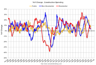 On a year-over-year basis, private residential construction spending is up 4.1%. Non-residential spending is up 3.5% year-over-year. Public spending is up 7.0% year-over-year.