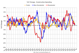 On a year-over-year basis, private residential construction spending is up 1.6%. Private non-residential spending is up 2.5% year-over-year. Public spending is up 6.0% year-over-year.
