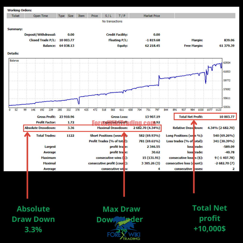 Maximal Drawdown: Reported at $2,682.70 (4.34%) – a relatively low figure indicating good capital preservation during the period shown.