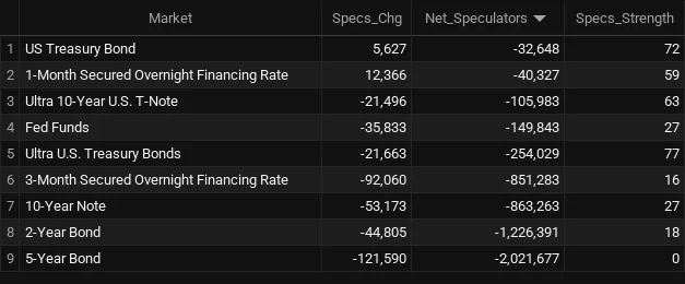 Weekly Speculator Changes led by SOFR 1-Month & US Treasury Bonds