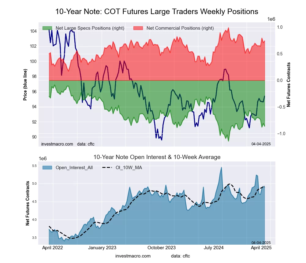 The latest COT data is updated through Tuesday April 1st and shows a quick view of how large traders (for-profit speculators and commercial hedgers) were positioned in the futures markets.