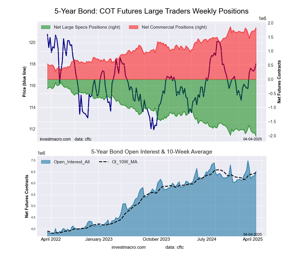 The 5-Year Treasury Note large speculator standing this week totaled a net position of -2,021,677 contracts in the data reported through Tuesday. This was a weekly fall of -121,590 contracts from the previous week which had a total of -1,900,087 net contracts.
