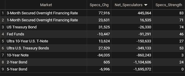 Weekly Speculator Changes led by SOFR 3-Months & US Treasury Bonds