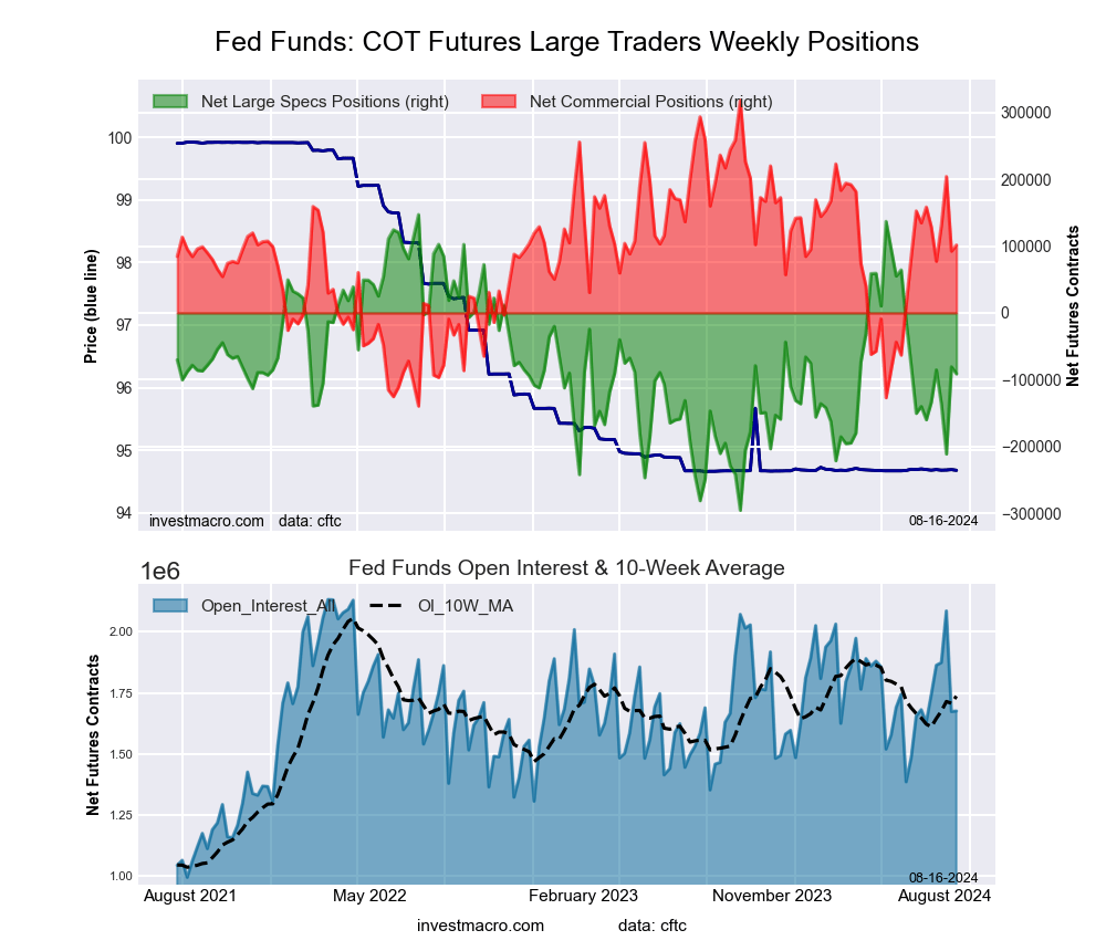 The 30-Day Federal Funds large speculator standing this week equaled a net position of -91,291 contracts in the data reported through Tuesday. This was a weekly fall of -10,447 contracts from the previous week which had a total of -80,844 net contracts.