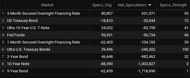 Weekly Speculator Changes led by Fed Funds & SOFR 3-Months