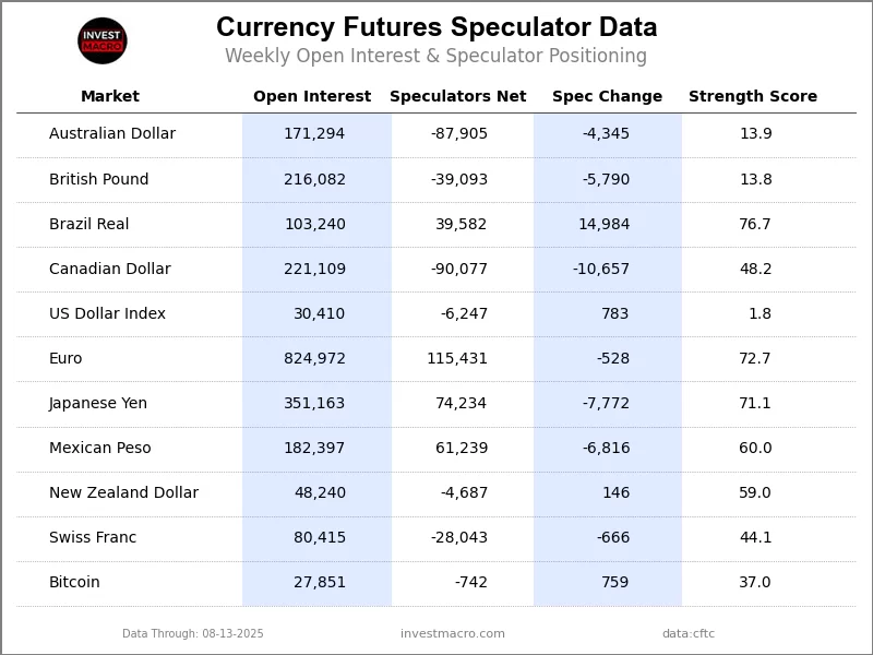 Here are the latest links to our coverage of the Commitment of Traders data changes. Data updated through August 12th.