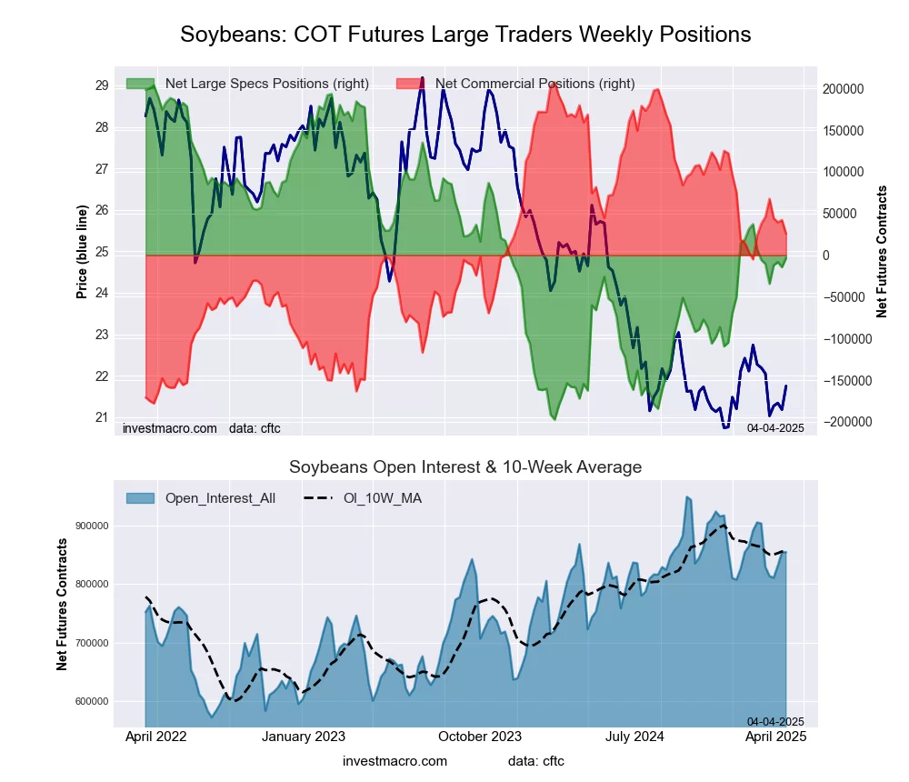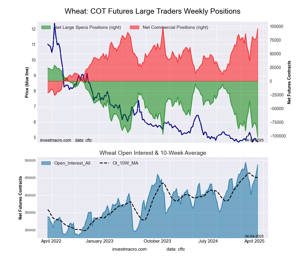 The latest COT data is updated through Tuesday April 1st and shows a quick view of how large traders (for-profit speculators and commercial entities) were positioned in the futures markets.
