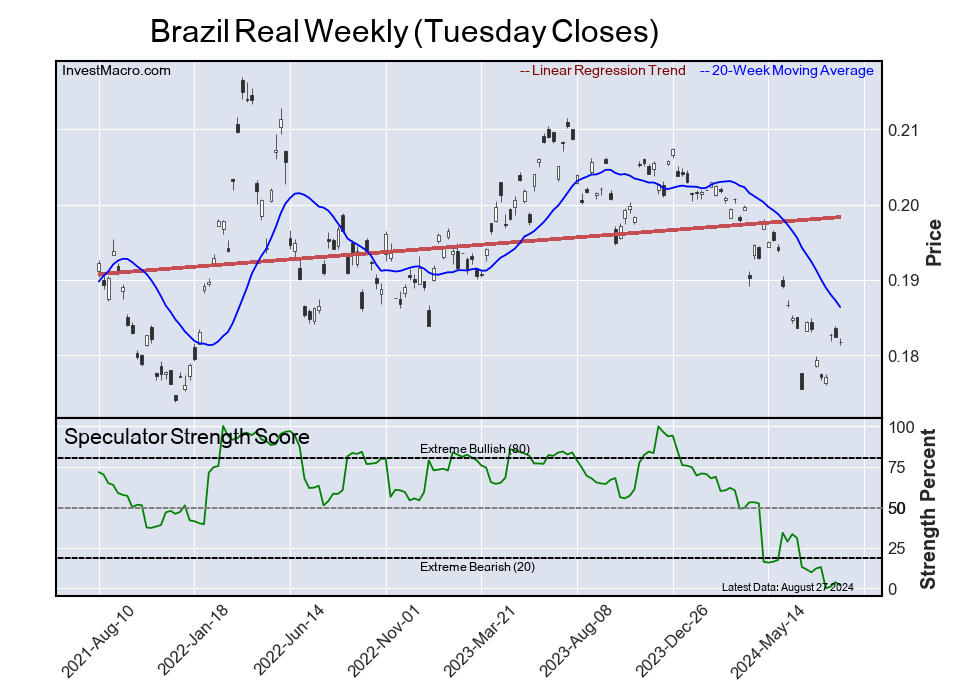 The Brazil Real speculator position comes in as the most bearish extreme standing this week. The Brazil Real speculator level is at a 1.8 percent score of its 3-year range.