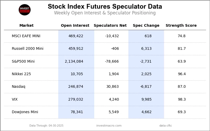 - COT Stock Market Charts: Speculator Bets led higher by VIX & Russell 2000 May 3, 2025