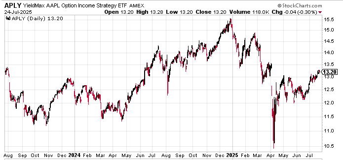 APLY focuses on Apple stock. It holds synthetic long exposure to AAPL and sells call options on it to generate income.
