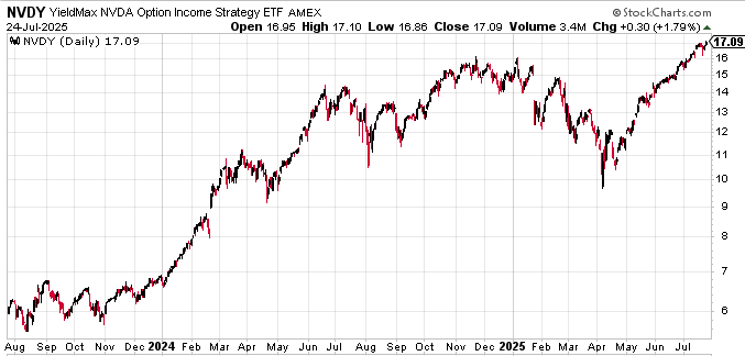 The ETF is one of several single-stock covered call funds under the YieldMax umbrella.