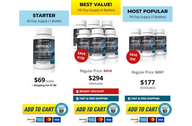 3 Bottle (90-day supply): Priced at only $177, ideal for users who have already experienced the benefits of Critical T and are ready to purchase a bigger supply.