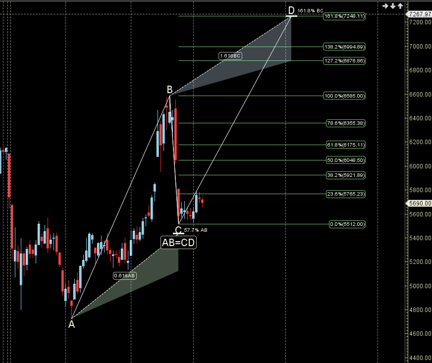 Price has bounced from Shark Pattern PRZ zone heading towards 5900 till holding 5500.