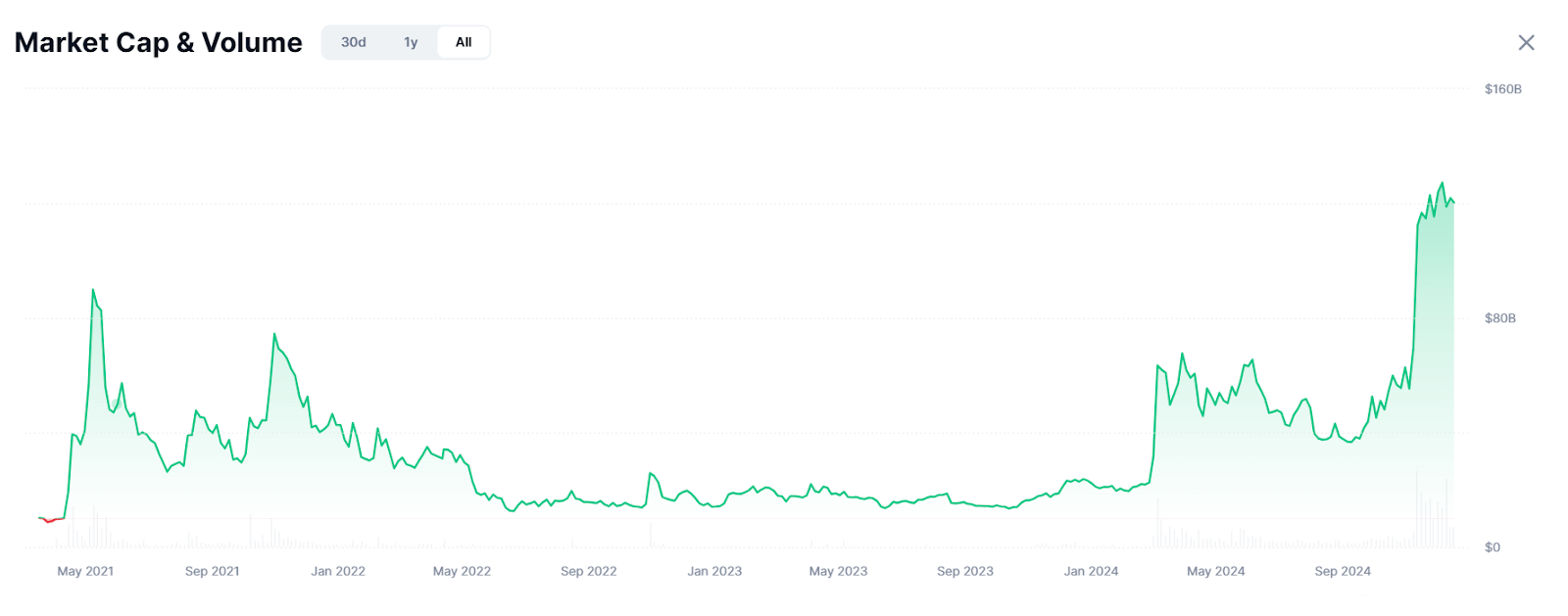 With meme coins only beginning to etch their legitimacy into the fabric of a bona fide crypto sector this year after peaking at a $137 billion market cap, expectations are high that bullish activity will continue well into the future.