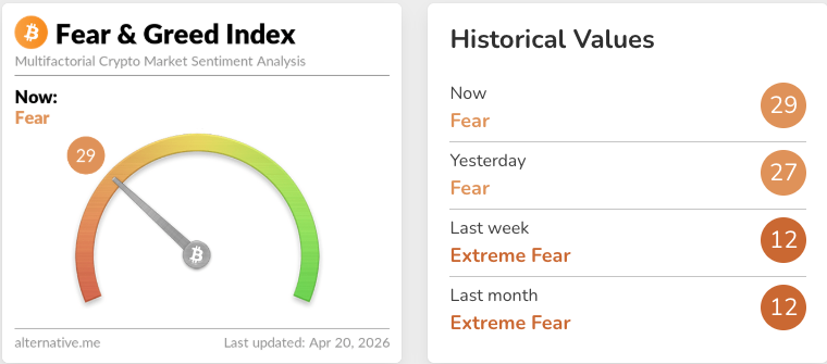Sentiment improvement was also reflected in the Crypto Fear & Greed Index, which moved from “extreme fear” to “fear,” with the score rising above 29 on Monday for the first time since Jan. 29.