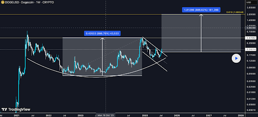 That would require a $1.45 trillion market cap with its 145 billion tokens, more than Bitcoin’s best moment and nearly in Apple or Microsoft territory.