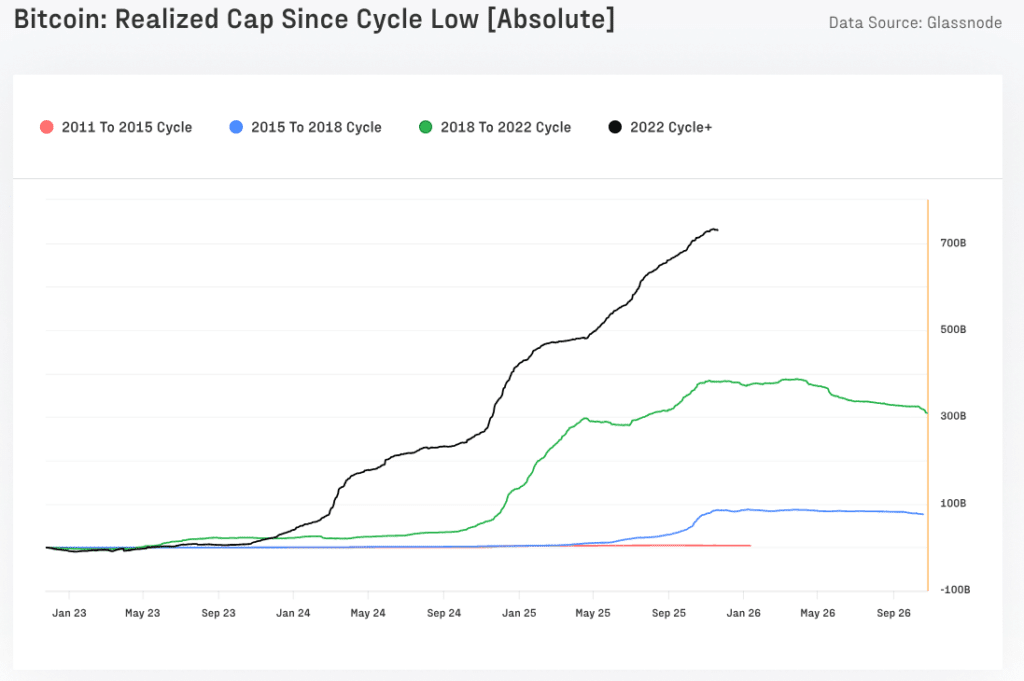 Bitcoin Realized Cap Growth by Cycle (Data: Glassnode)