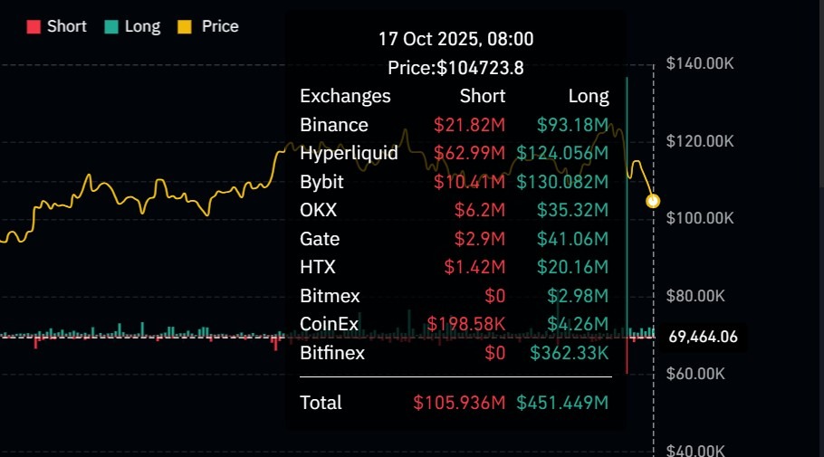 From this amount, about $451 million came from long positions, while $105 million came from short liquidations.