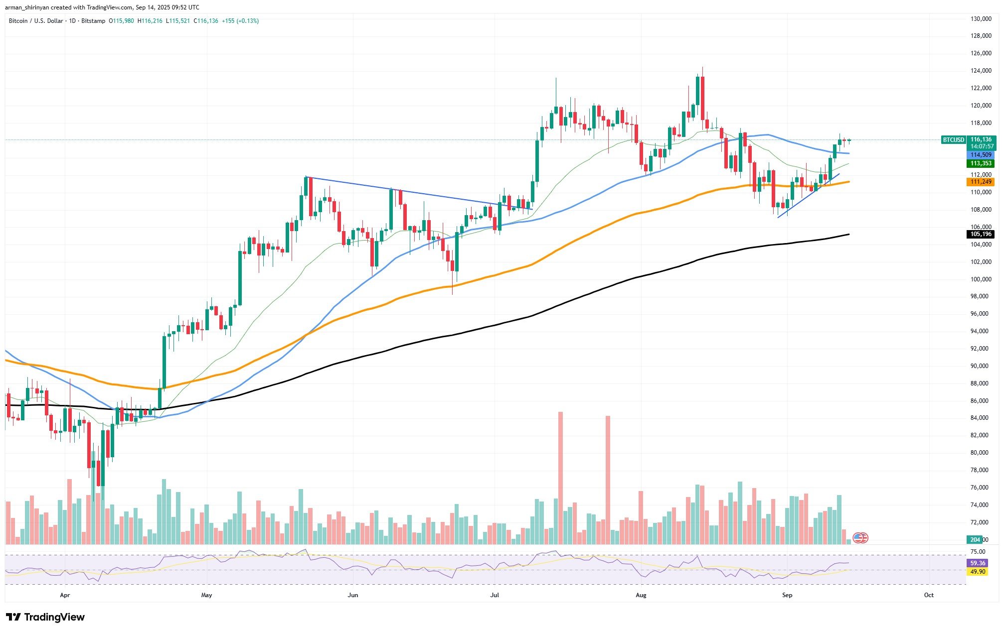 There are indications of fatigue in the technical picture as well. Even though the 50-day moving average continues to support Bitcoin, and it is still on the rise, generally trading volume has decreased in comparison to earlier rallies, indicating that buyers are hesitant at these levels. Bitcoin is not overbought, but it also lacks the momentum usually needed for a breakout, as indicated by the Relative Strength Index (RSI), which stays neutral.
