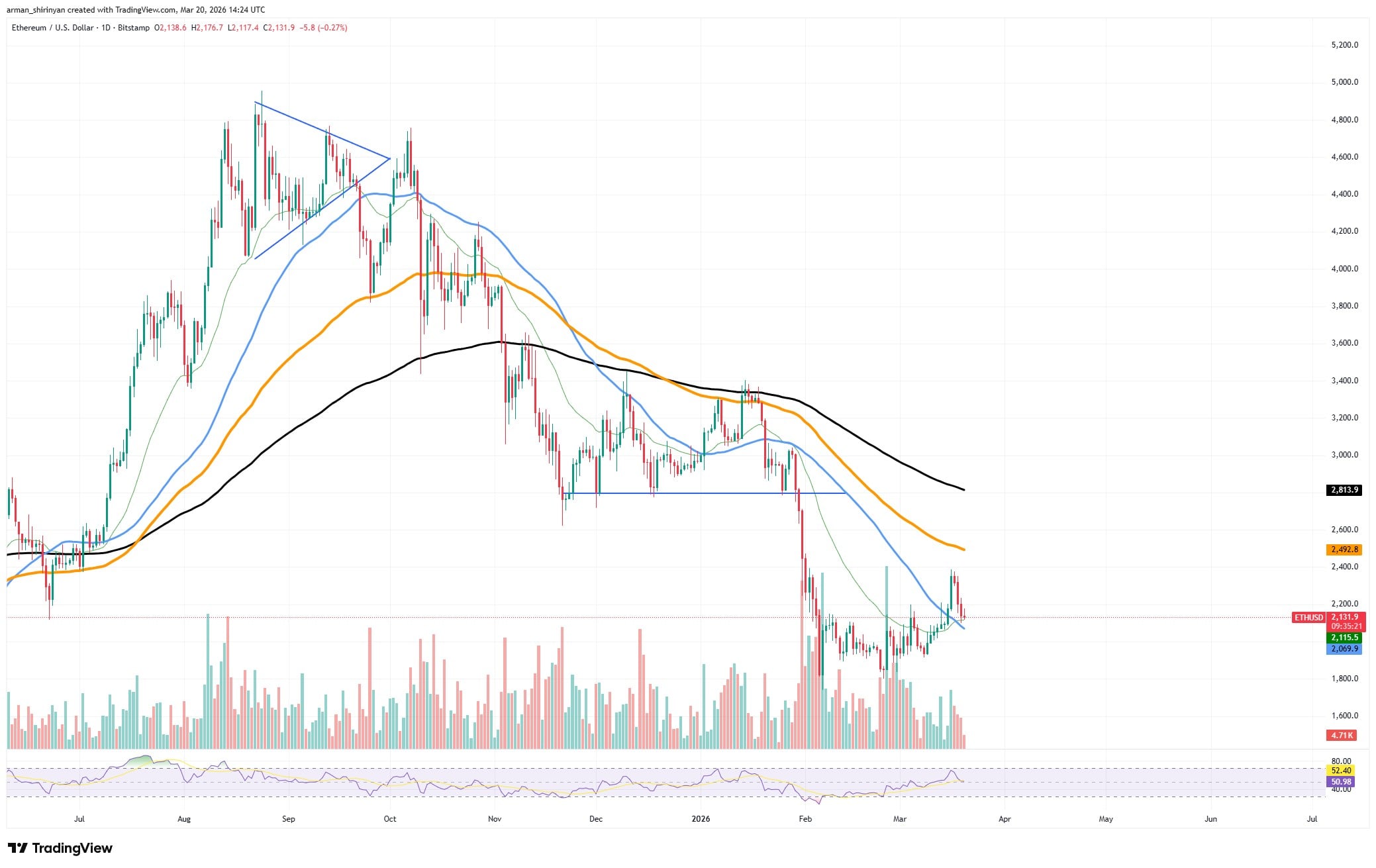 Recent price action indicates that Ethereum’s short-term recovery may be coming to an end, and the cryptocurrency is getting close to a critical threshold.