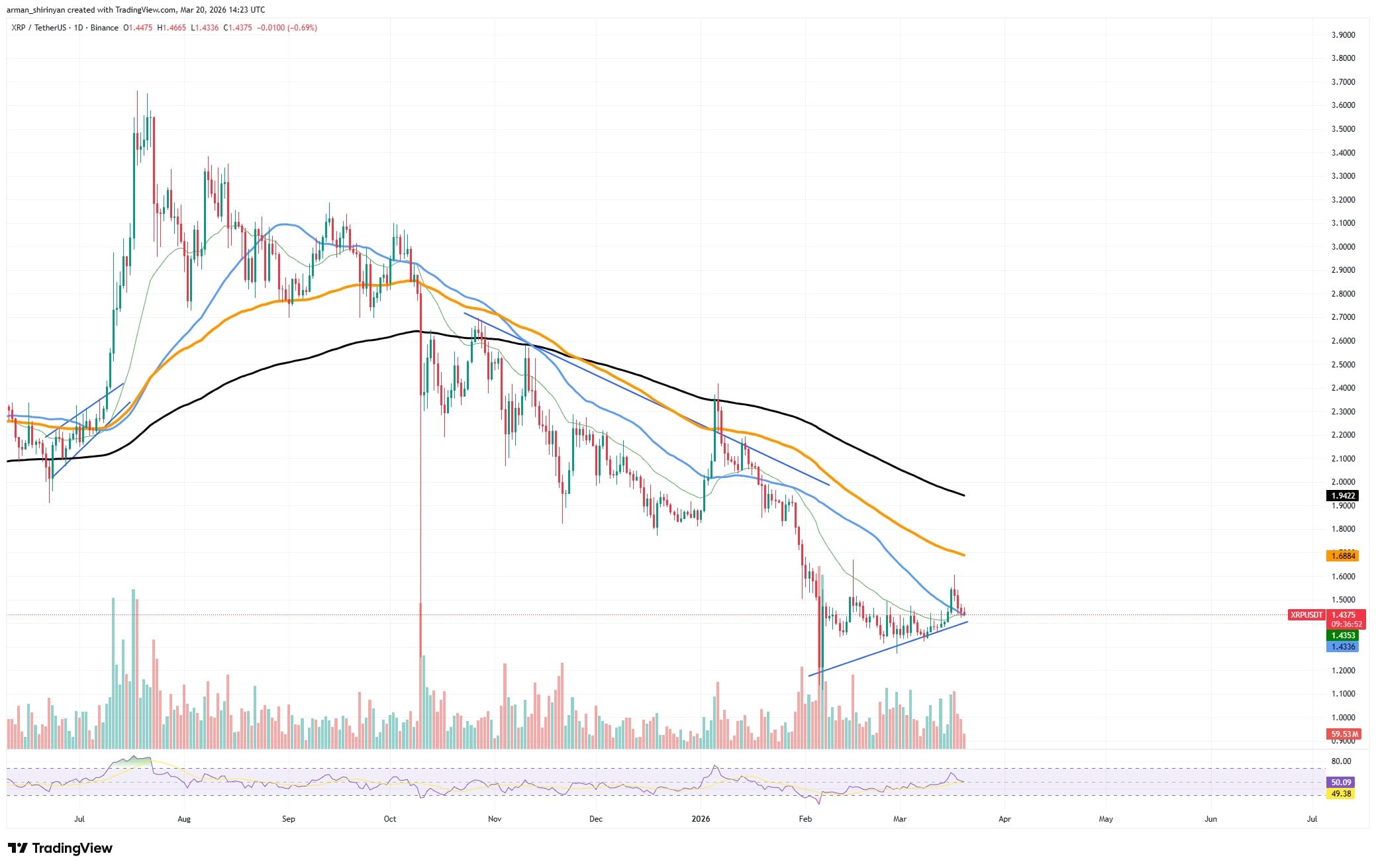 In the short term, a return to the $1.50-$1.60 resistance range is conceivable if XRP maintains this zone. However, the opposite is also crucial. Because the loss of three concurrent supports would eliminate a crucial defensive layer for bulls, a breakdown below this confluence would invalidate the structure and probably cause a sharper move downward.