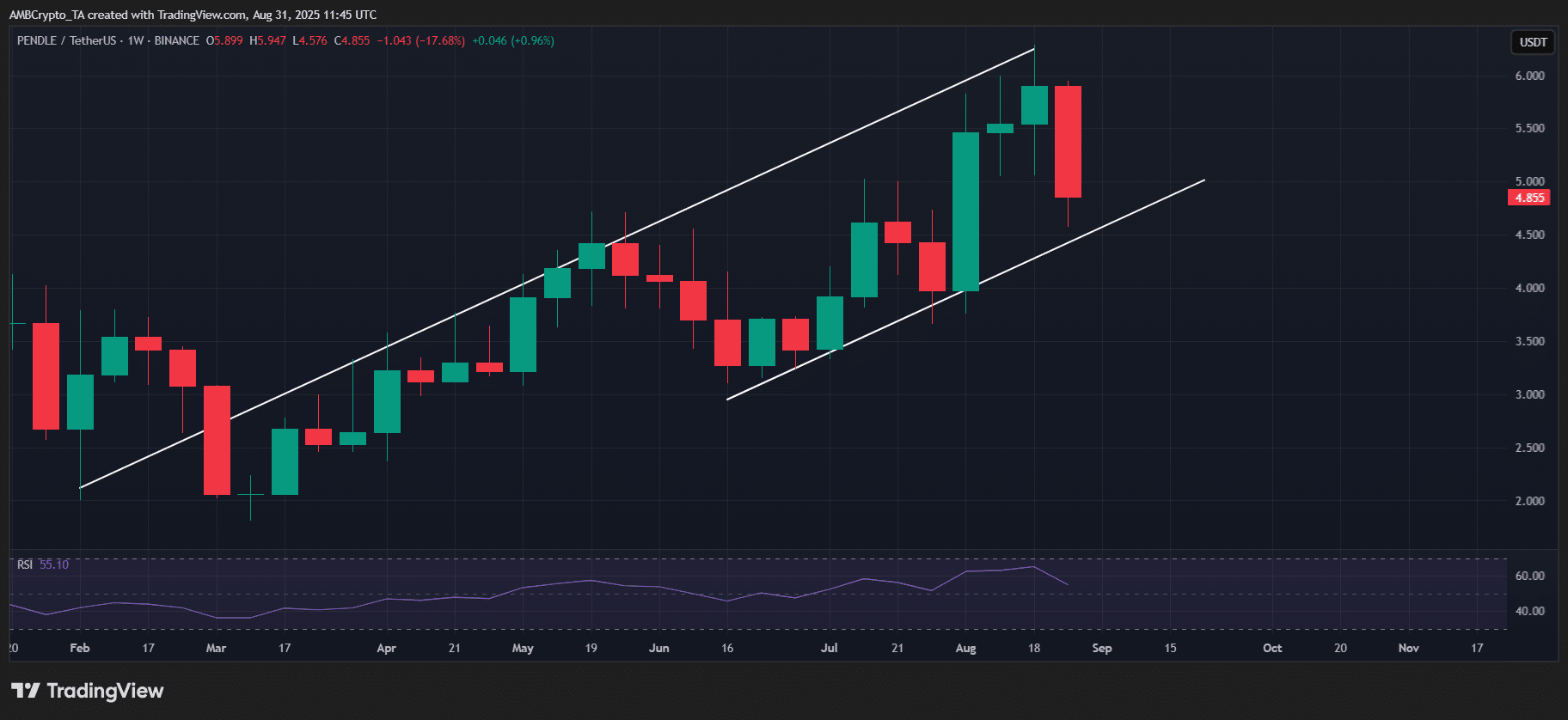 Pendle [PENDLE] topped the weekly losers, down 17.9% from its $5.90 open, printing its first red weekly candle of the month and signaling an overheated setup.