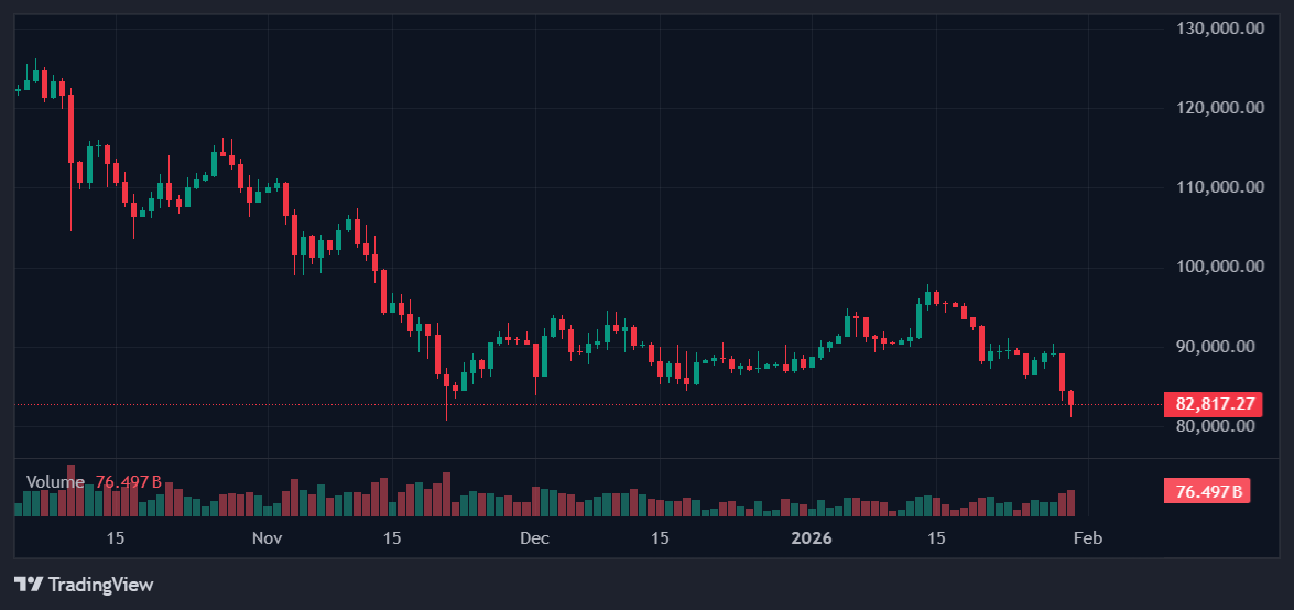 As Crypto News Australia reported, Hyperliquid rose about 54% over the period, while Canton gained roughly 12%. These, and a few other altcoins like River, were the only large-cap assets showing any positive performance, leaving the broader market vulnerable once selling pressure accelerated. Bitcoin and Ethereum are down 6.3% and 5.9%, respectively, and over 8% in the weekly chart, as per data from CoinMarketCap.