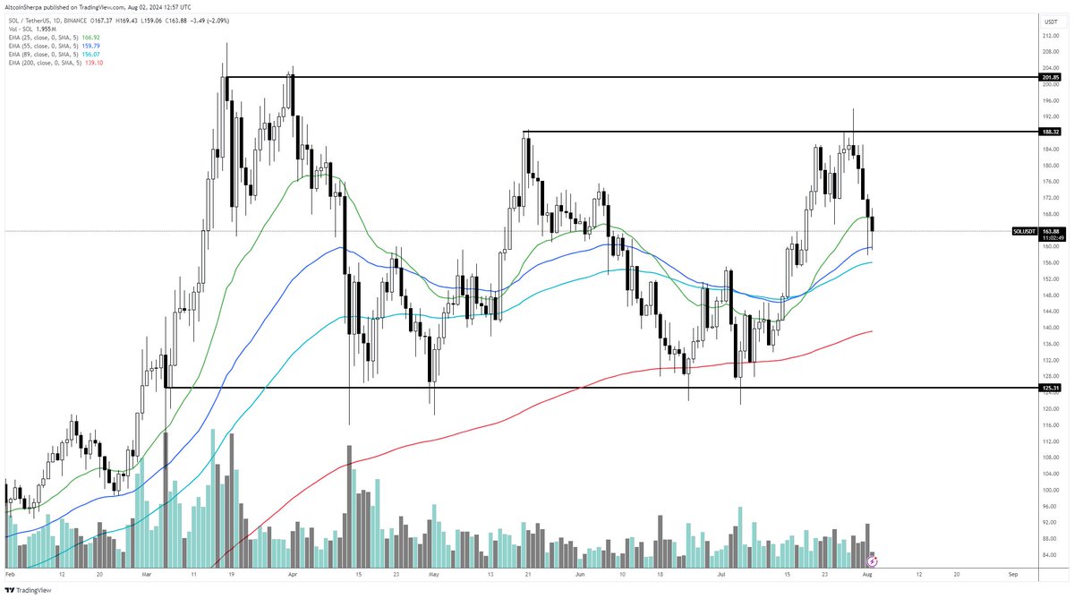 Next up, the analyst says that Ethereum (ETH) competitor Solana (SOL) could decline to as low as $125 before a bullish reversal.