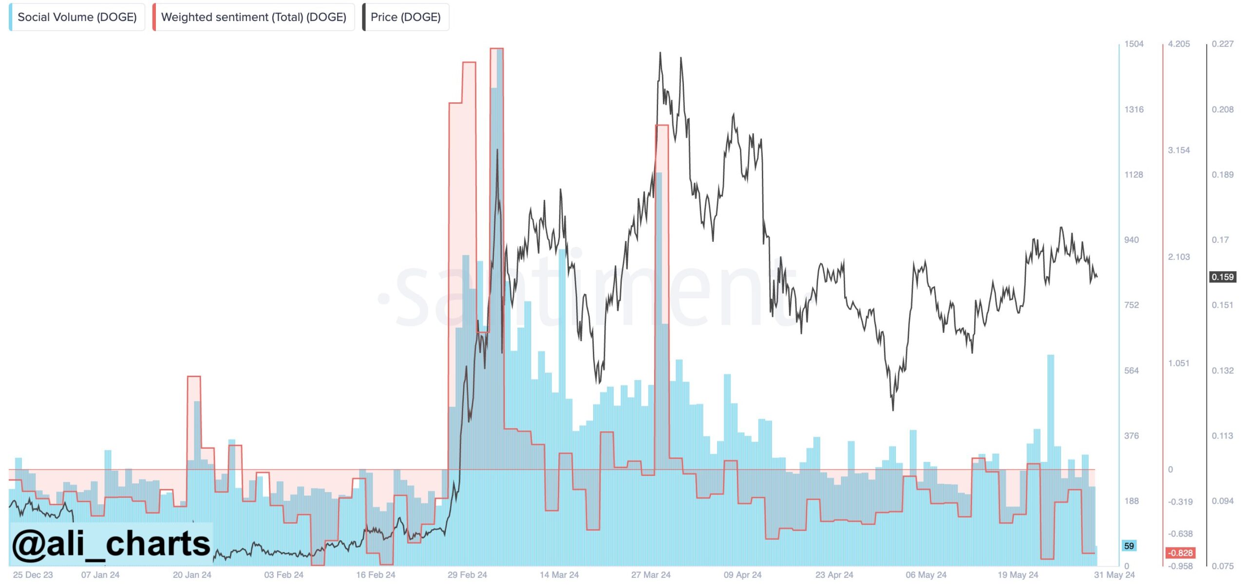 “Market sentiment for Dogecoin is as bearish as it was in early February, just before DOGE skyrocketed by 200%!”