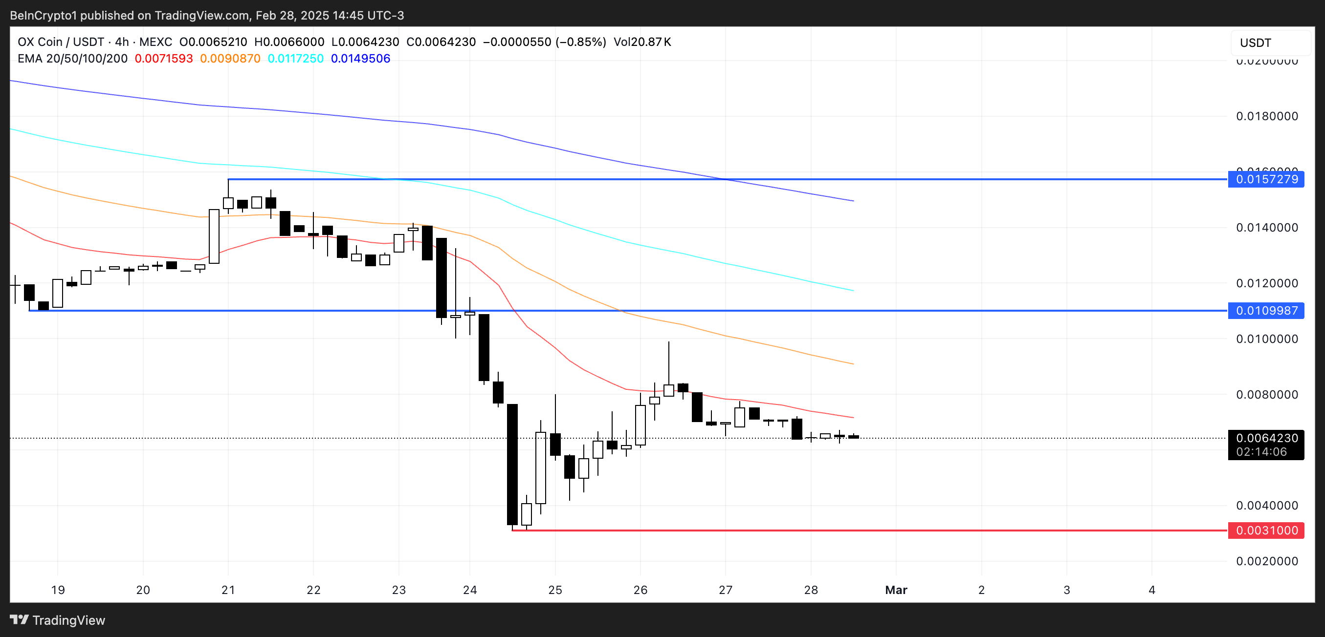 If OX can recover from the recent correction, it could test resistance at $0.01 and potentially rise to $0.015. Conversely, if the correction continues, OX could drop to $0.0031.