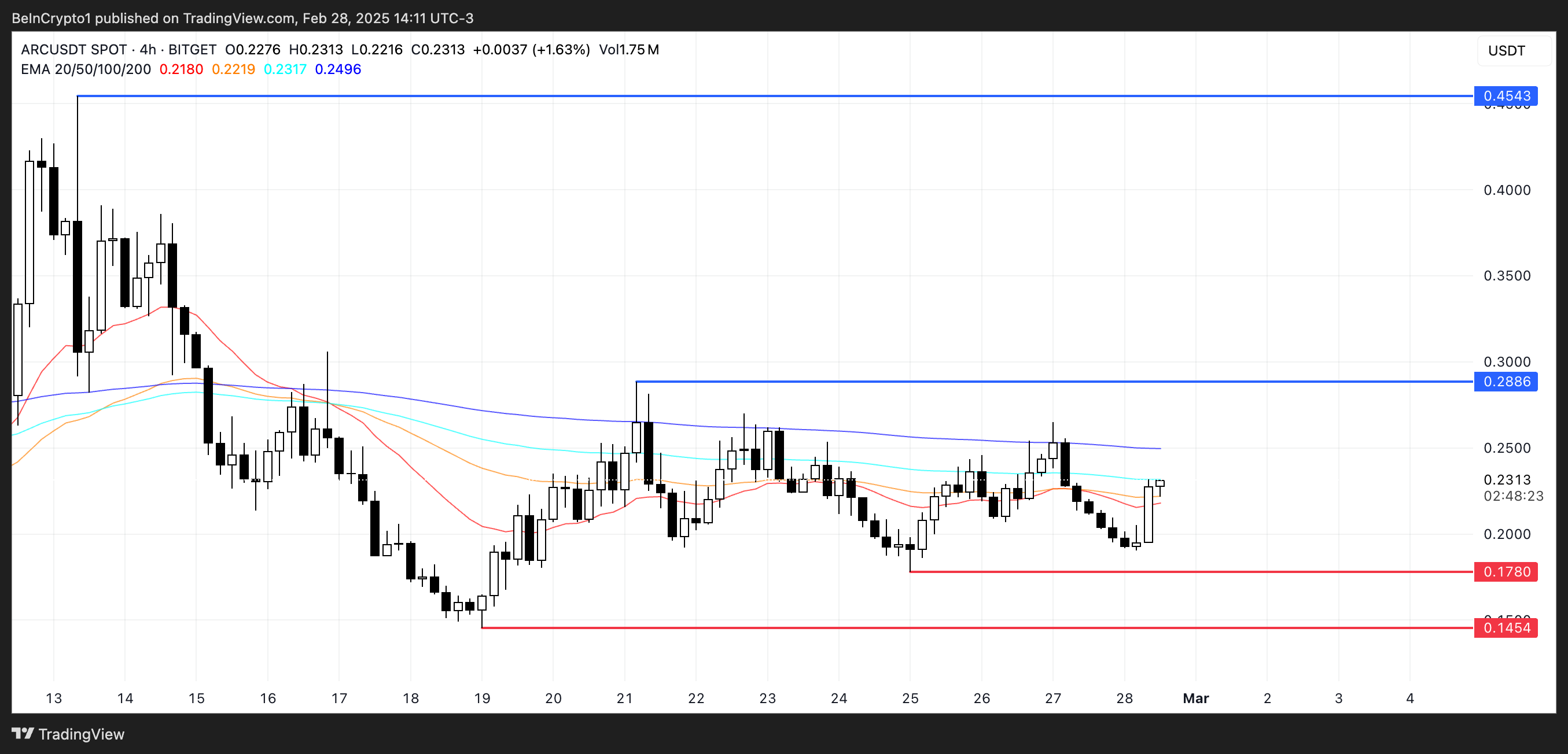 However, if the current correction continues, ARC could test the support at $0.178, and if that level fails, it could drop further to $0.14.