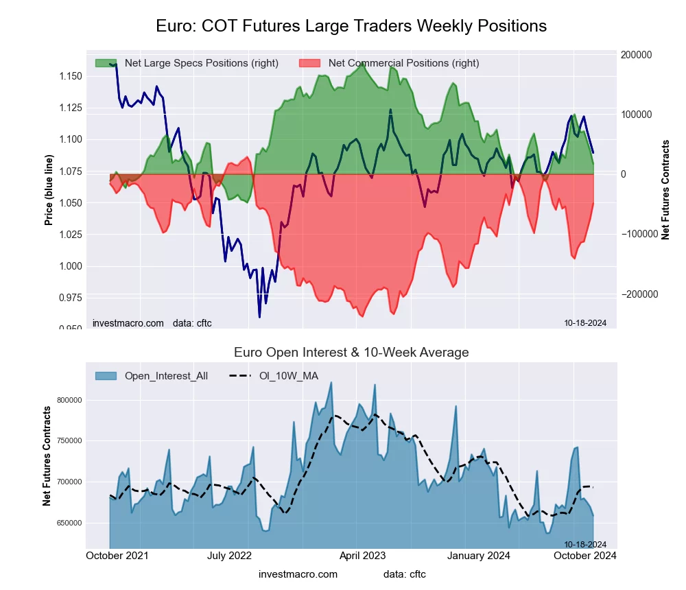 The latest COT data is updated through Tuesday October 15th and shows a quick view of how large market participants (for-profit speculators and commercial traders) were positioned in the futures markets. All currency positions are in direct relation to the US dollar where, for example, a bet for the euro is a bet that the euro will rise versus the dollar while a bet against the euro will be a bet that the euro will decline versus the dollar.