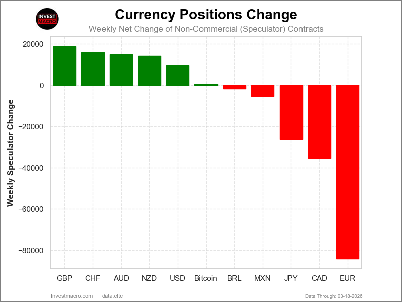Currency Speculators sharply drop Euro, CAD bets while boosting GBP, CHF & AUD