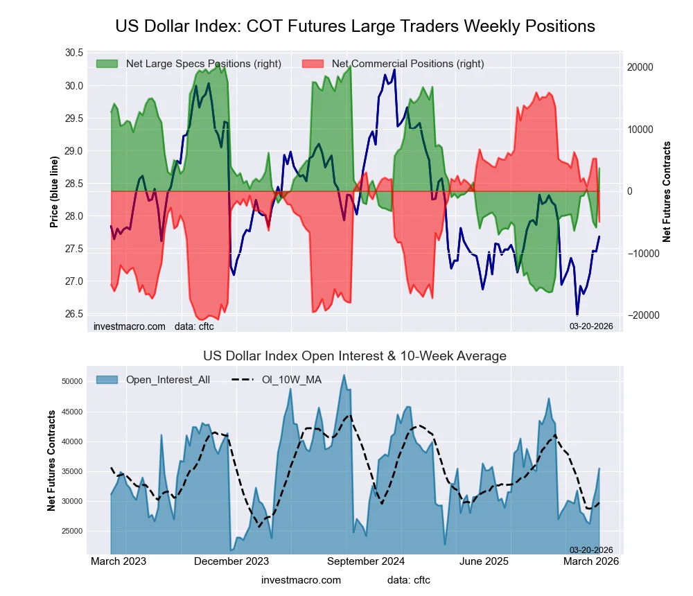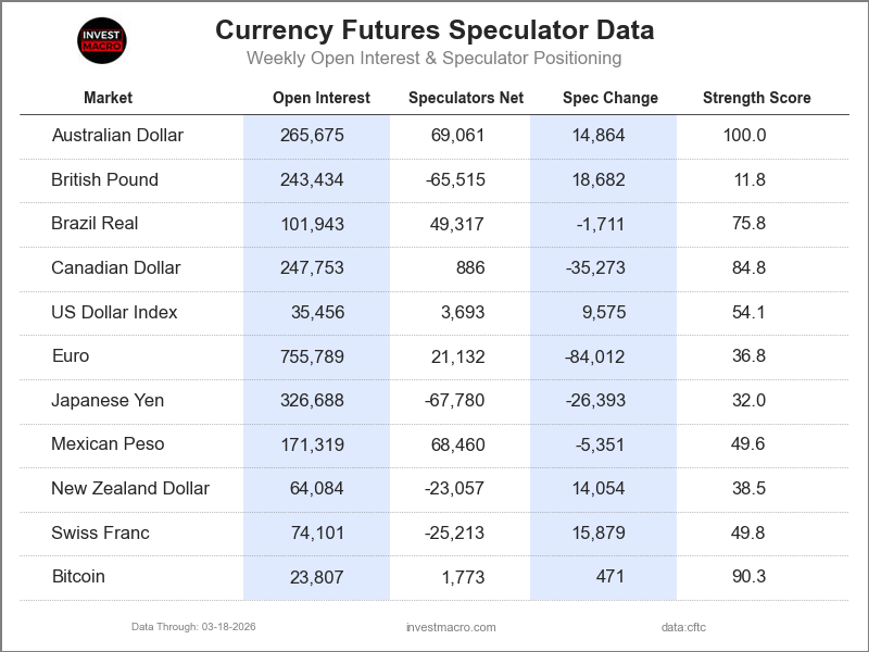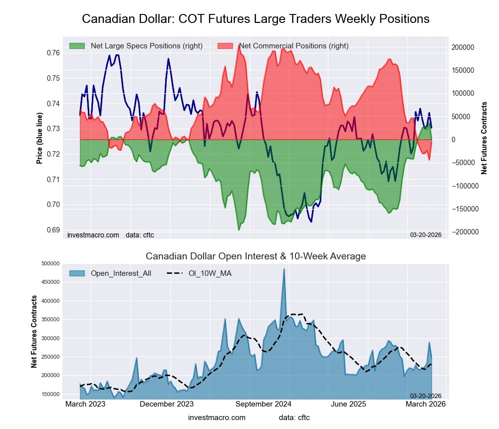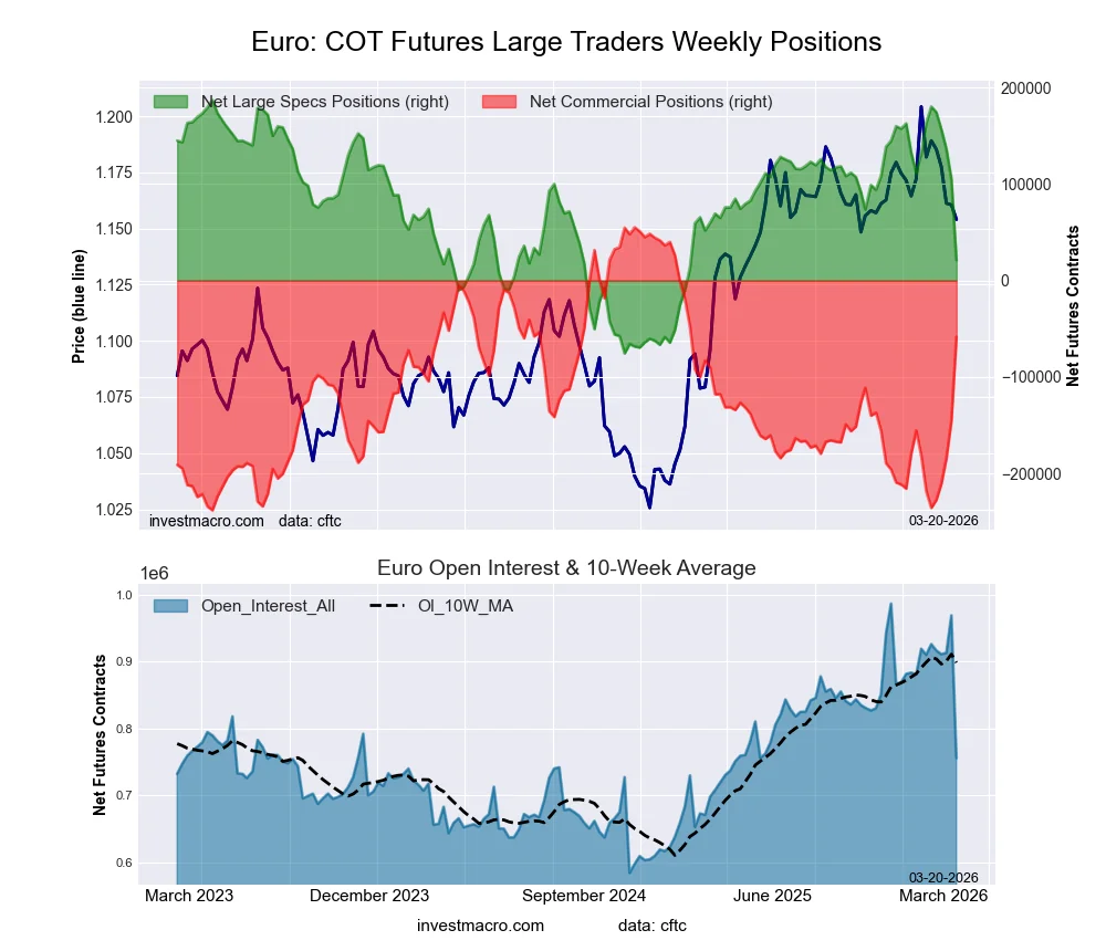 The latest COT data is updated through Tuesday March 17th and shows a quick view of how large market participants (for-profit speculators and commercial traders) were positioned in the futures markets. All currency positions are in direct relation to the US dollar where, for example, a bet for the euro is a bet that the euro will rise versus the dollar while a bet against the euro will be a bet that the euro will decline versus the dollar.