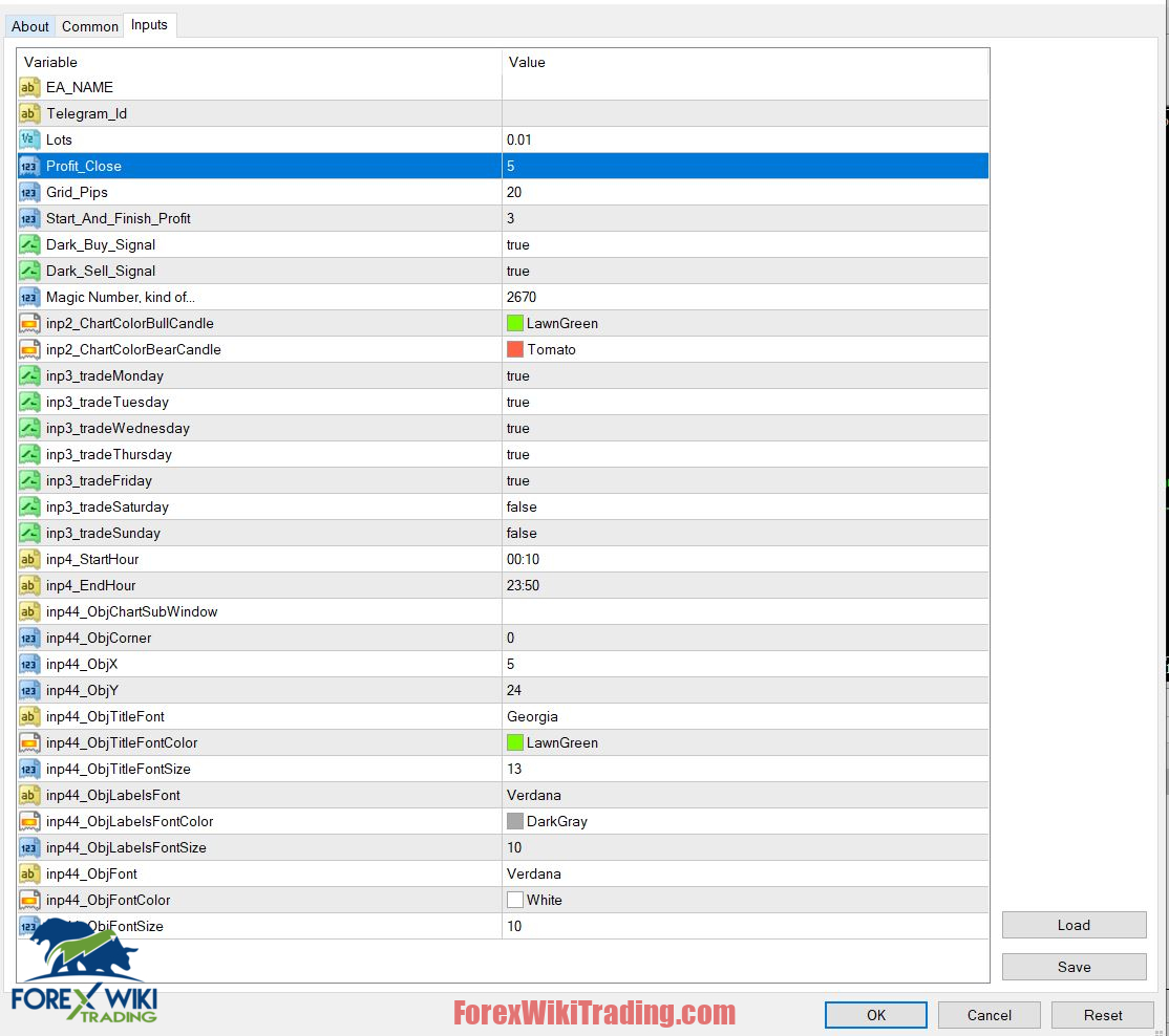 - Lot Size: Defines the size of each trade.