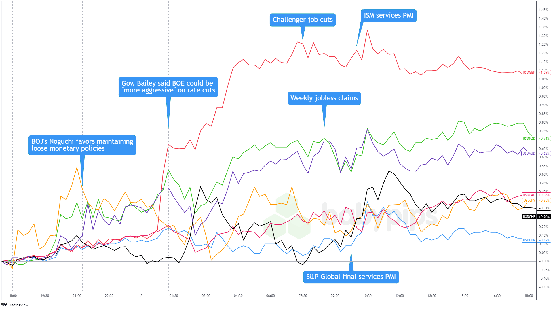 Overlay of USD vs. Major Currencies Chart by TradingView