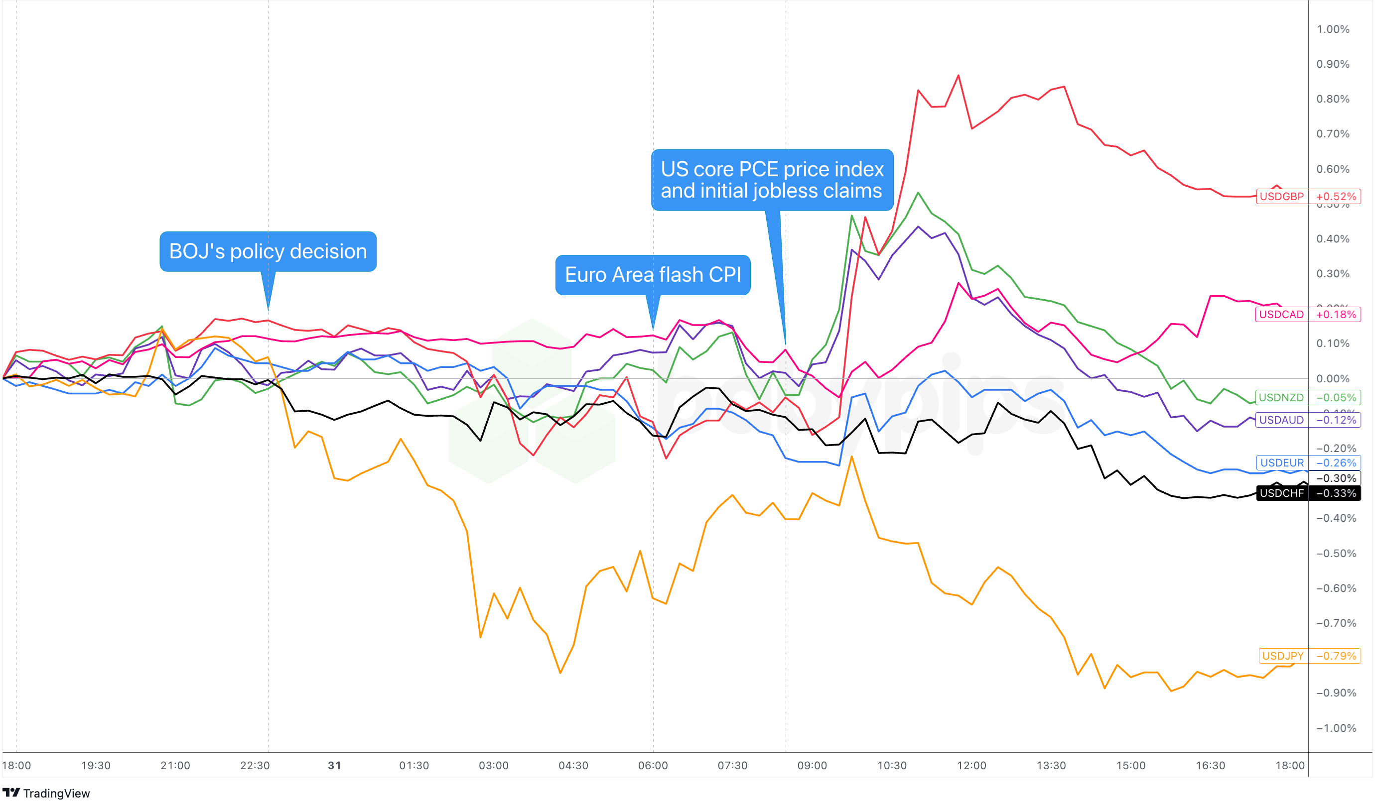 Overlay of USD vs. Major Currencies Chart by TradingView