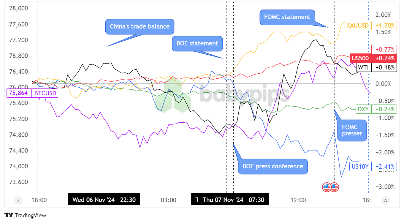 Thursday’s price action seemed to be a mix of calm after the U.S. election storm and some profit-taking, as most asset classes moved in consolidation early on while bitcoin and the U.S. dollar saw pullbacks.