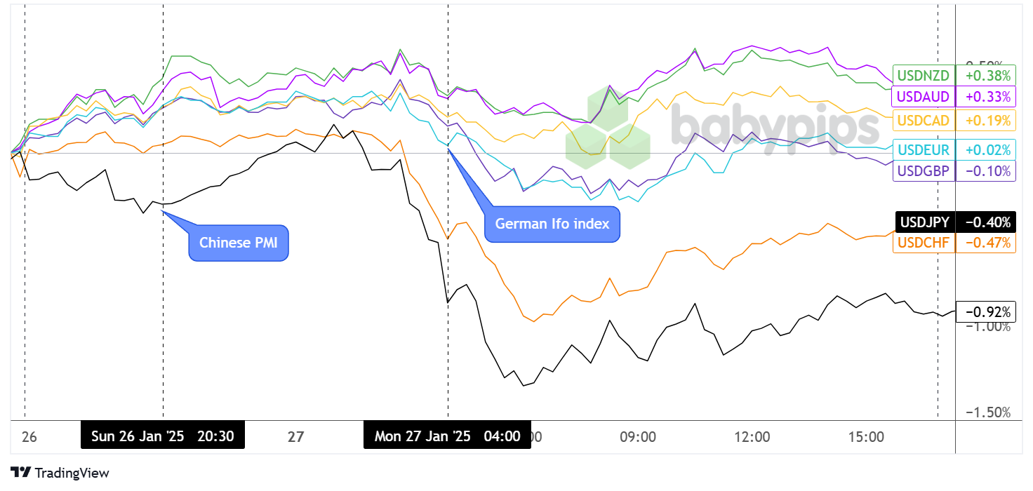 A few hours into the Asian session, reports of China’s AI breakthrough with DeepSeek that promised less energy-intensive efforts weighed heavily on tech sector stocks, including industry leader Nvidia which eventually suffered a massive 18% decline in market cap. This development sent shockwaves through global stock markets and contributed to the S&P 500’s 1.5% decline and Nasdaq’s 3% drop.