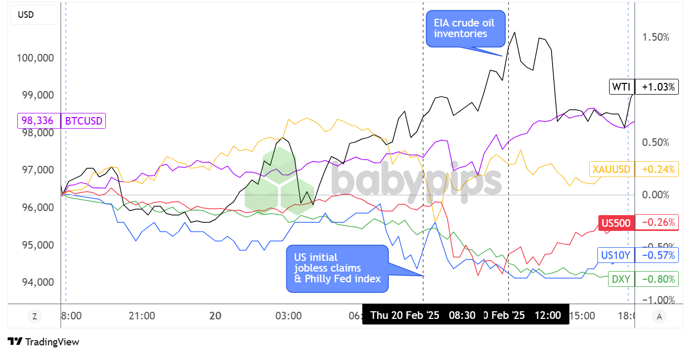 - U.S. initial jobless claims at 219K for week ending February 13 (215K expected, 214K forecast)