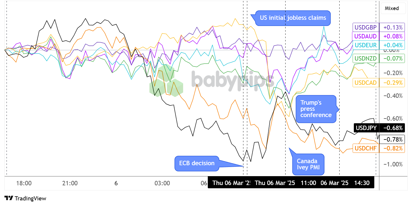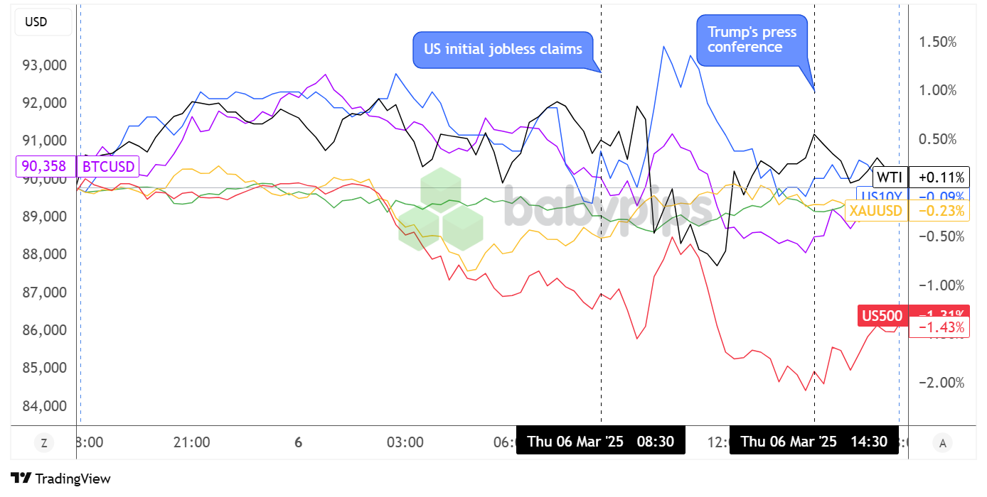 Investors appeared to be on edge ahead of another press conference by U.S. President Trump, during which he announced a delay in tariffs on Canadian and Mexican products covered by the USMCA until April 2, signaling a major turn from his decision to impose the largest tariffs in a century just a couple of days back.
