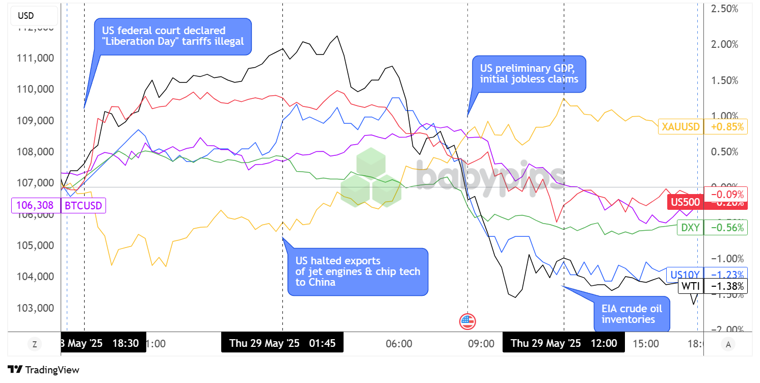The big news for the day was a U.S. federal court ruling against the legitimacy of Trump’s tariffs, causing major waves among risk assets.