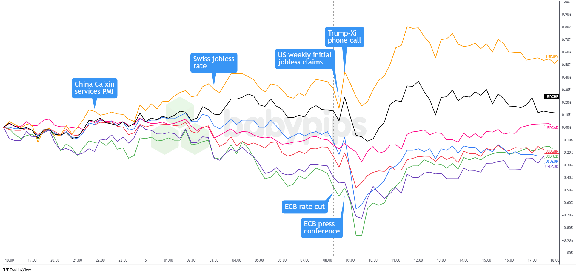 By day’s end, USD/JPY, USD/CHF, and USD/CAD closed higher. USD/CAD likely found some support from higher oil prices and U.S.-Canada trade hopes, but safe-haven flows and potential pre-NFP report profit-taking eventually took the wheel.