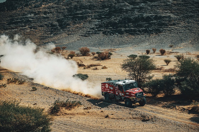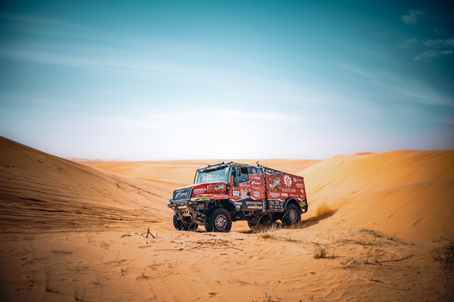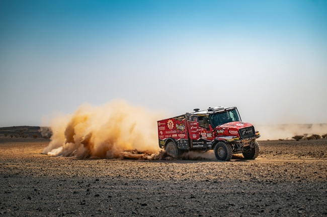 Stage 3 saw another battle at the front, where Red Dragon led much of the stage despite two late punctures near the finish line. Loprais still managed to finish just 1:30 behind the stage leader – a remarkable performance under pressure.